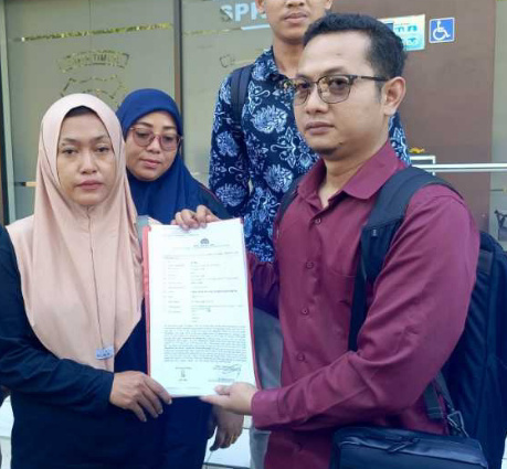 Siti Aini ibu korban balita Hanania didampingi kuasa hukum Frendy dari Lembaga Bantuan Hukum Damar Indonesia serta Sigit Imam Basuki Ketua JCW, mengadukan dan melaporkan kasus kematian anaknya tersebut ke SPKT Polresta Sidoarjo, Rabu (4/9/2025) kemarin.