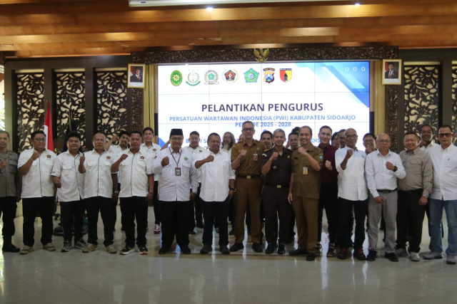 Pengurus Persatuan Wartawan Indonesia (PWI) Kabupaten Sidoarjo periode 2025–2028 resmi dilantik di Pendopo Delta Wibawa, Senin (20/10/2025).