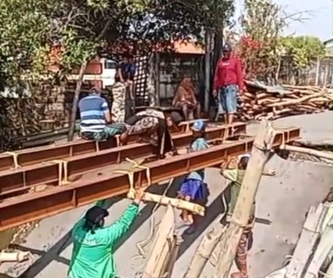 Belum Ada Action Dinas Terkait, Warga Perbaiki Sendiri Jembatan Gisik Cemandi