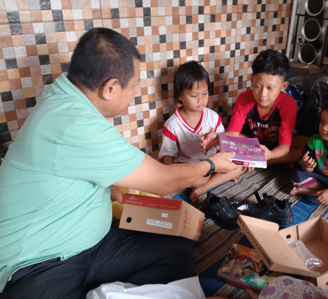 Jum’at Berkah, Abah Sutadji Berikan Sembako, Sepatu Dan Peralatan Sekolah Baru Untuk Adi Dan Gendis