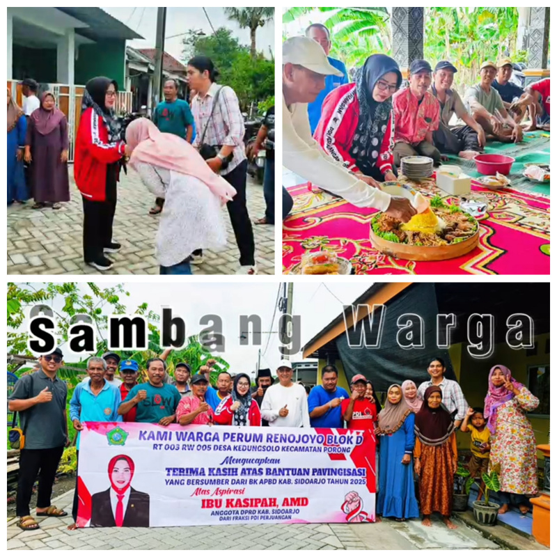 Sebagai bentuk syukur atas pembangunan paving yang di back up penuh Hj Kasipah anggota Fraksi PDIP DPRD Sidoarjo, warga RT 003 RW 05, menggelar tasyakuran secara sederhana bersama wakil rakyat dapil Sidoarjo 2 ini.