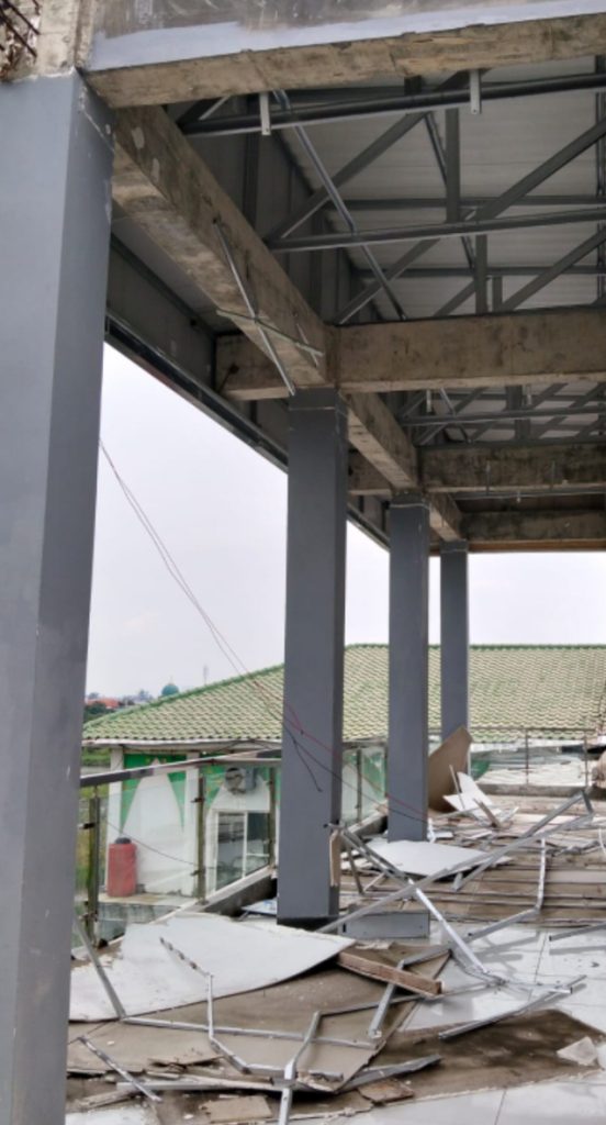 Ambrolnya atap teras ruang kelas di lantai 3 ini, tidak bisa diperbaiki dalam waktu dekat.