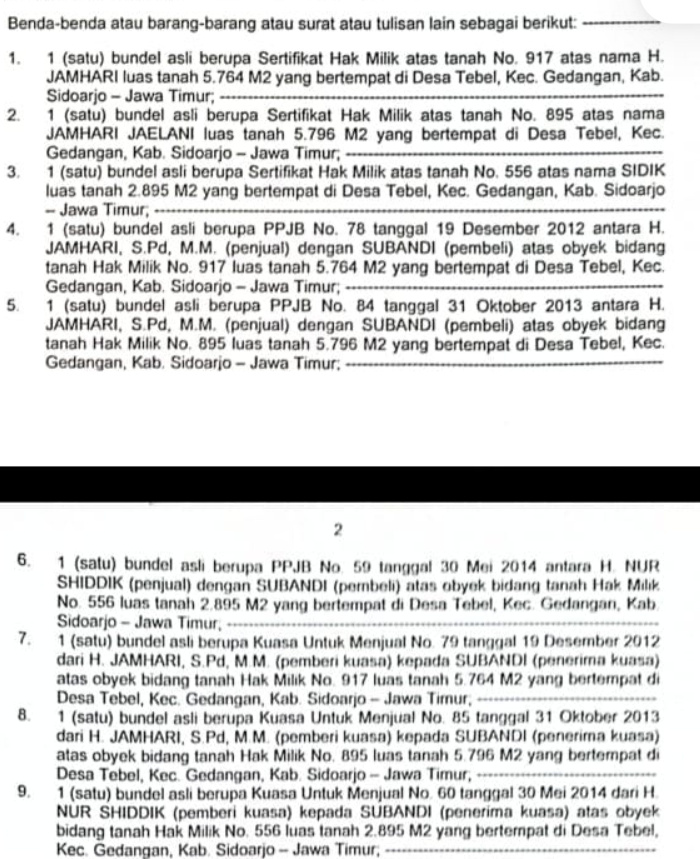 Dokumen-dokumen tersebut merupakan jaminan yang diberikan oleh Saudara Subandi kepada Bapak Rahmat Muhajirin terkait investasi di developer perumahan.