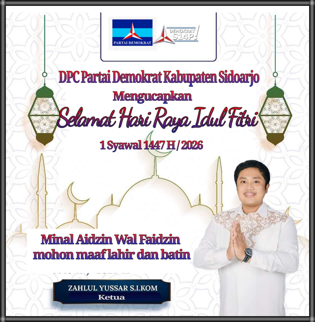 Selamat Hari Raya Idul Fitri 1 Syawal 1447 H / 2026, DPC Partai Demokrat Sidoarjo 13/03/202613/03/2026