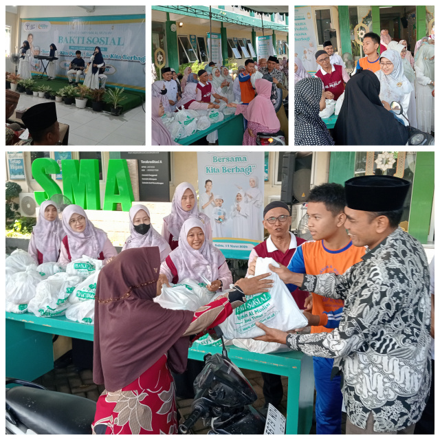 Yayasan Al Muslim kembali menyalurkan ribuan paket sembako untuk masyarakat miskin, duafa dan Yatim yang ada di empat desa di Kecamatan Waru sekitar sekolah Al Muslim.